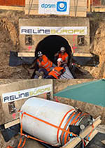 The companies DPSM (Veolia Group) and RELINEEUROPE also impressed their customers with specialized solutions for renovating drainage lines under roadways. Thanks to the use of an Alphaliner1800 with a very high elastic modulus, a wall thickness of 13 mm was sufficient to handle the high static loads of the highway running four meters above the pipe. The 105 meter long Alphaliner installed by DPSM with a weight of 13 tons was the longest glass-fiber reinforced CIPP liner ever installed in one piece in France.