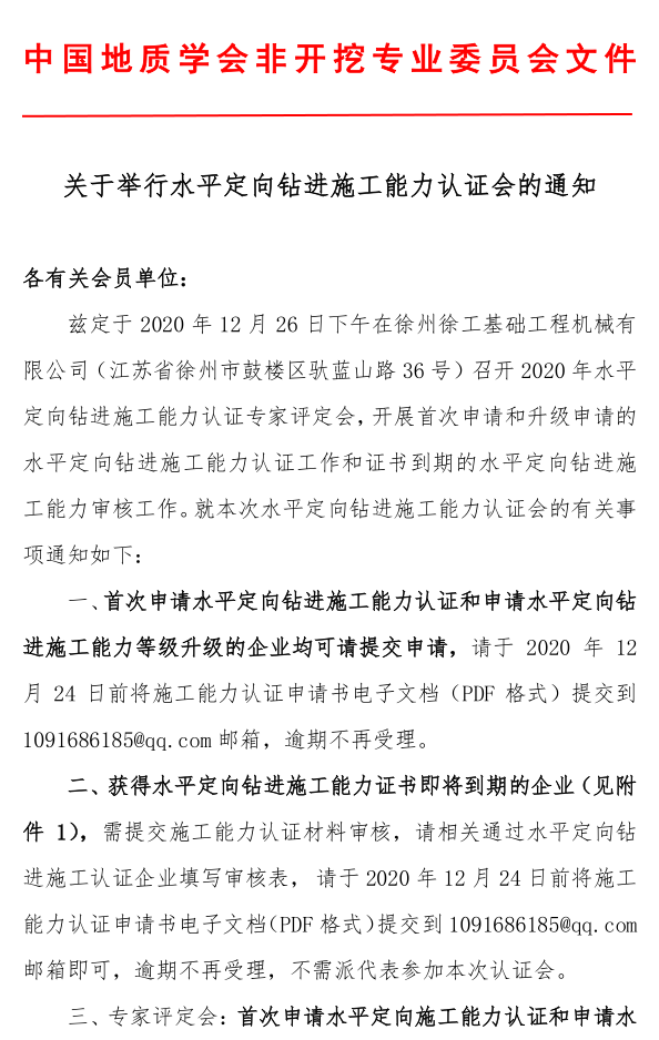 鑒于疫情的不確定性,2020年CSTT水平定向鉆進施工能力認證專家評定會(施工能力審核)計劃就召開這一次。請有需要的單位,詳細閱讀本通知,并于2020年12月24日前提交審核材料,逾期將不再受理。